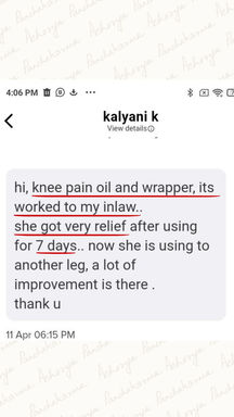 works miraculously for knee pain relief.My Kanaka Prabha Knee pain wrap is a well made concept of the exact same technique. My patients love it. Its quite convenient coz the oil stays in contact with the knee and it wont spread to bedsheets when you go to sleep.